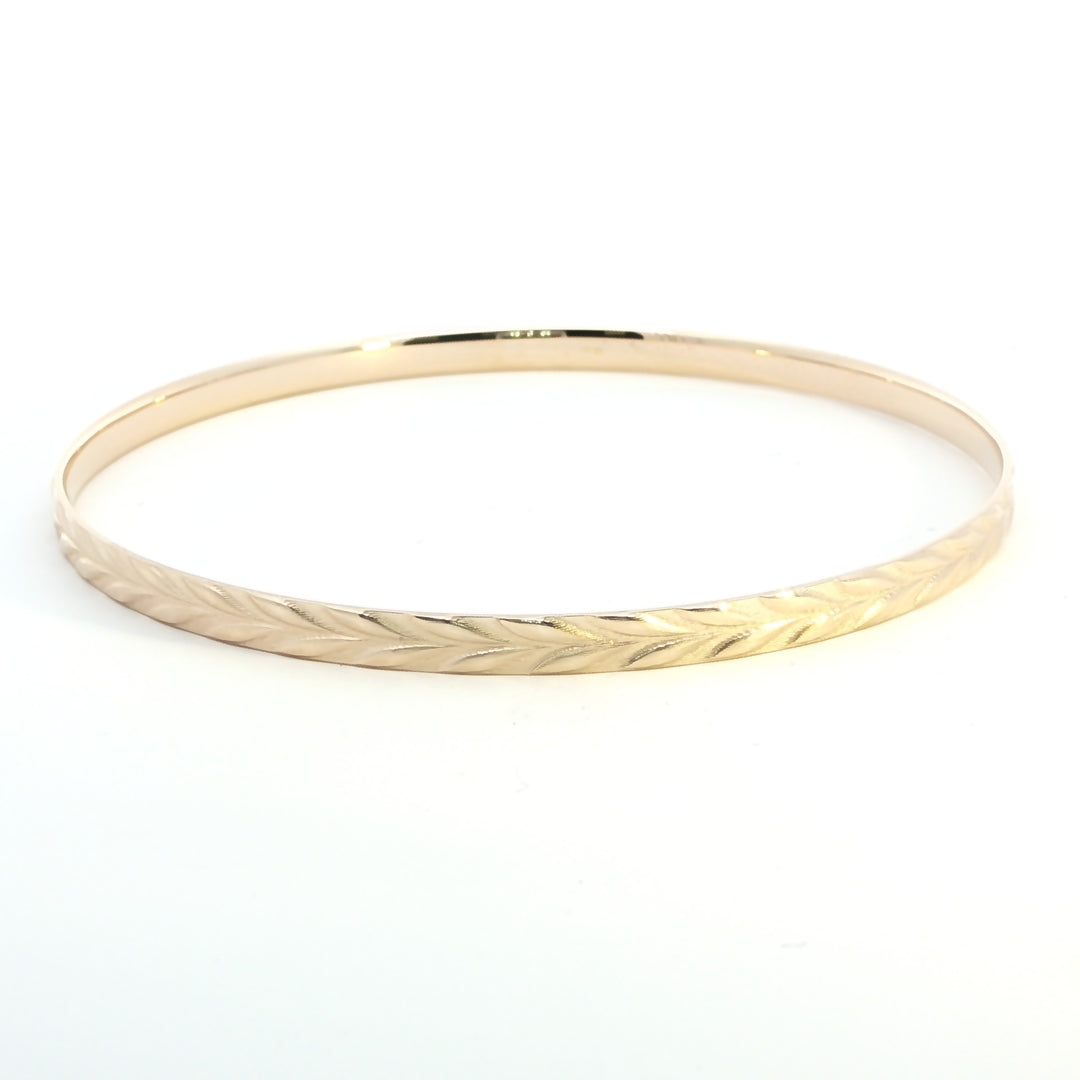 9ct y/g half round golf bangle 4.5mm wide 65mm diameter
