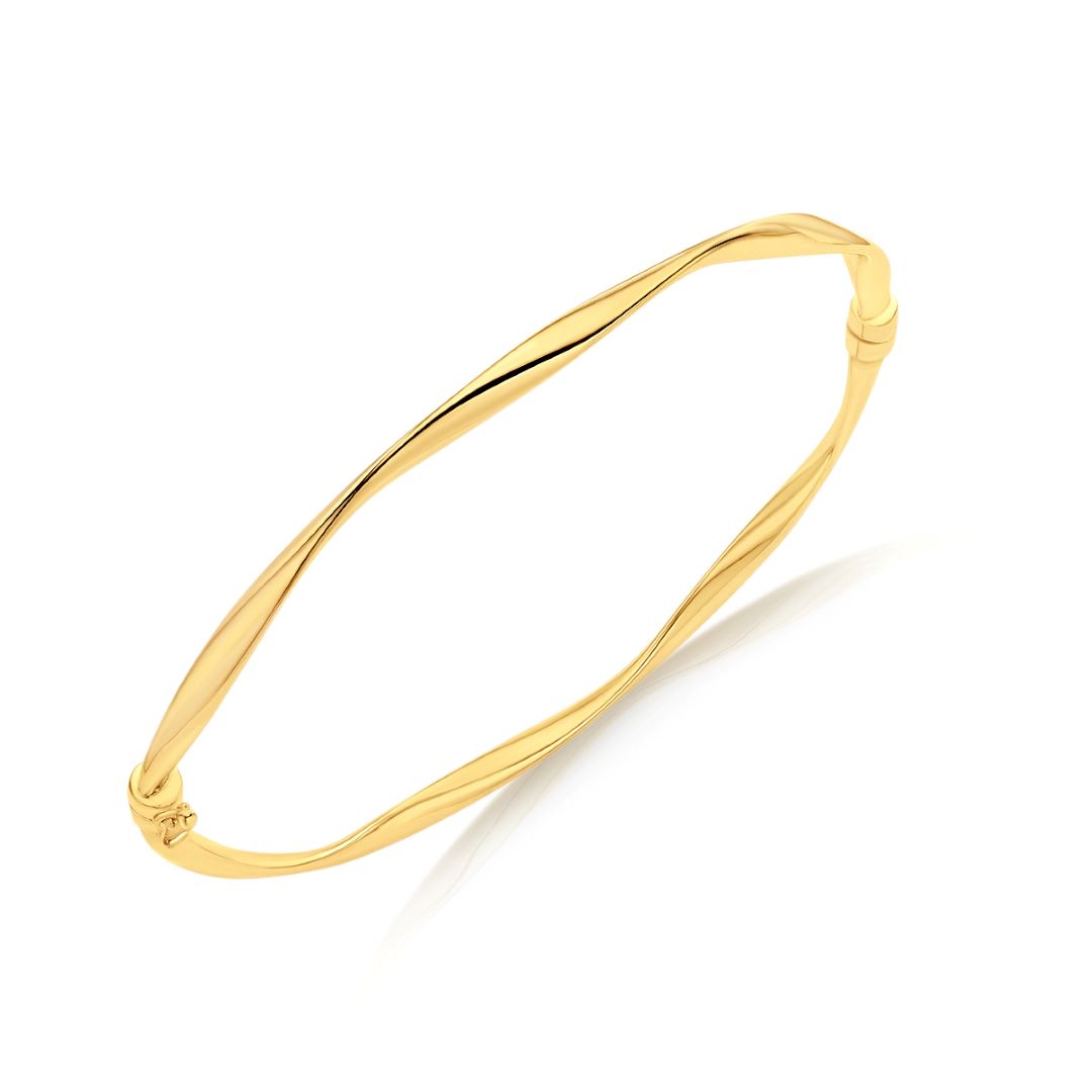9ct Yellow Gold twist flat thin ribbon style hinged bangle