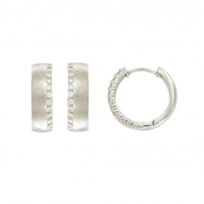 Sterling silver rhodium plated Huggie hoop earrings with ice matt finish and set with CZ's .