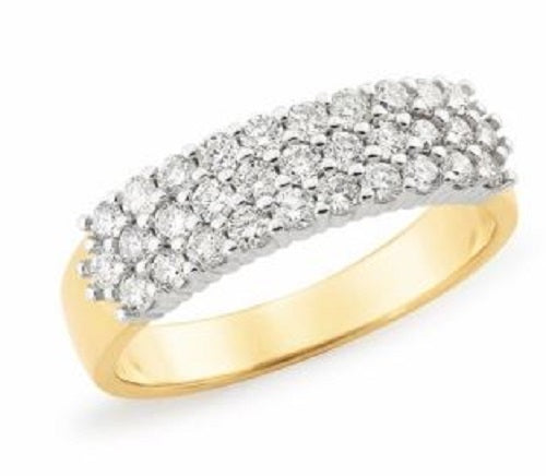 9ct Yellow/White Gold 3 row diamond set band TDW=1.04ct