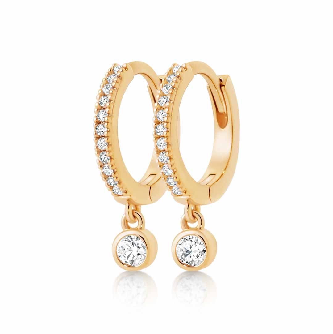 18ct Yellow Gold Plated CZ set Huggies with drop.