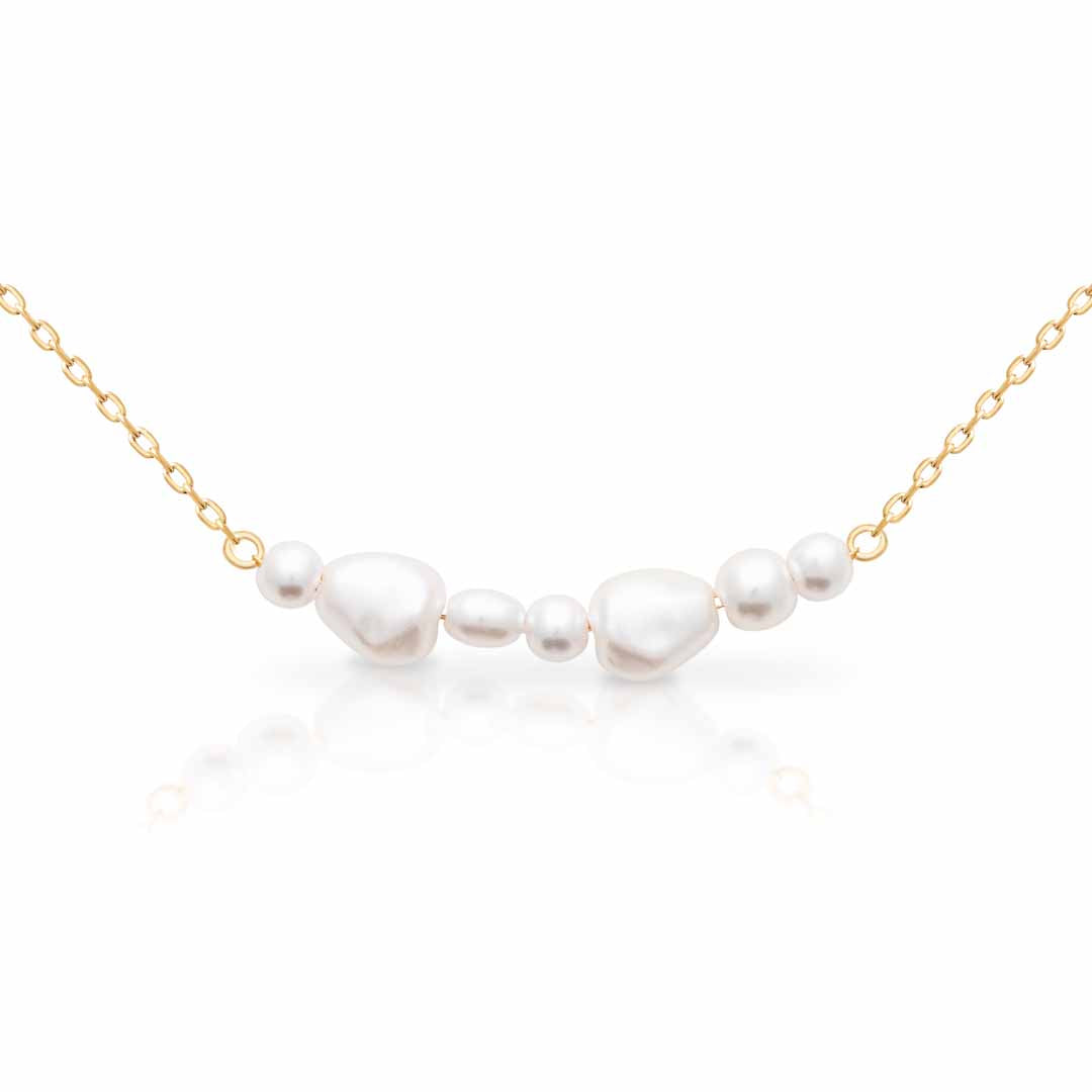 18ct Yellow Gold Plated Multi-Shape Synthetic Pearl Neacklace 45cm