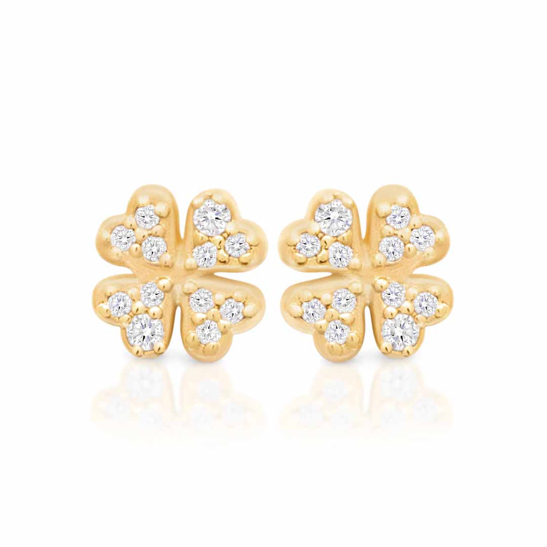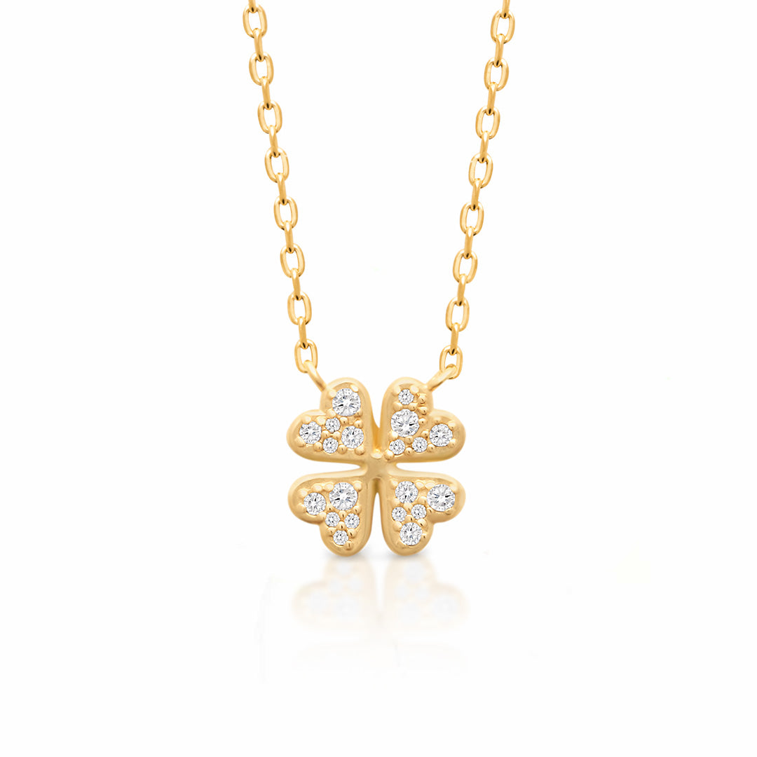 18ct Yellow Gold Plated Cubic Zirconia Set Four Leaf Clover Necklace 45cm