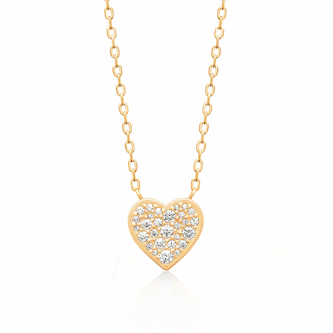 18ct Yellow Gold Plated Cubic Zirconia Pave Set Heart on 45cm Necklace