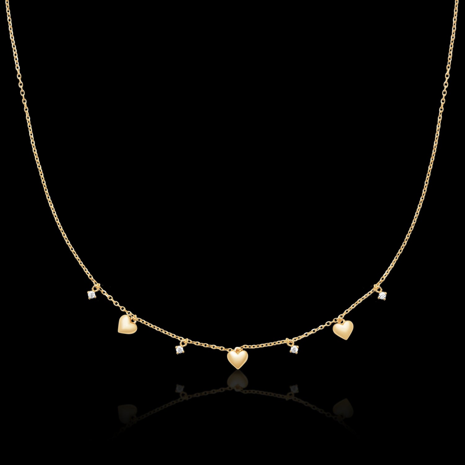 18ct Yellow Gold Plated CZ & Puff Heart Charm Necklace 45cm.