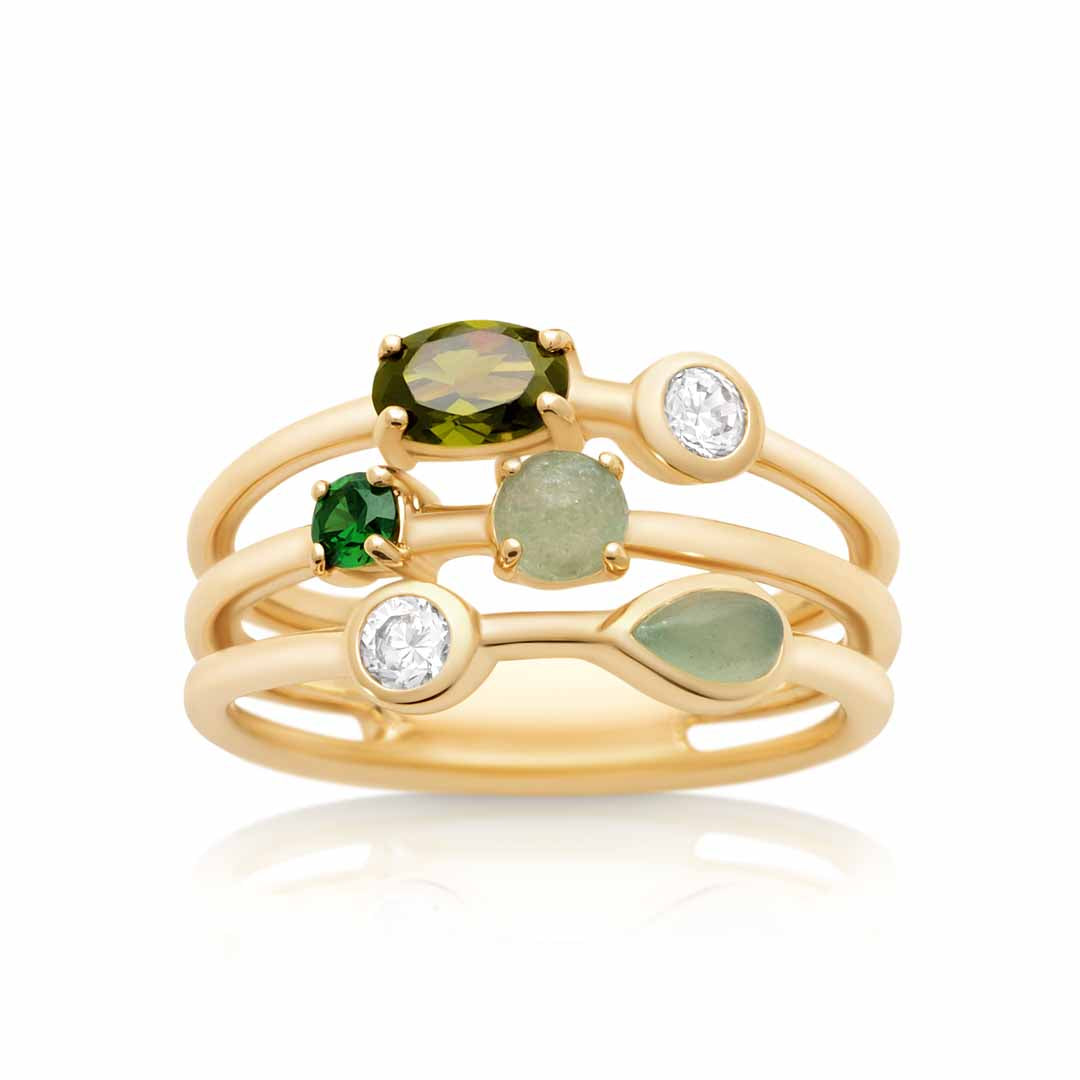 CZ & Synthetic Green Gemstone Ring 18ct Plated