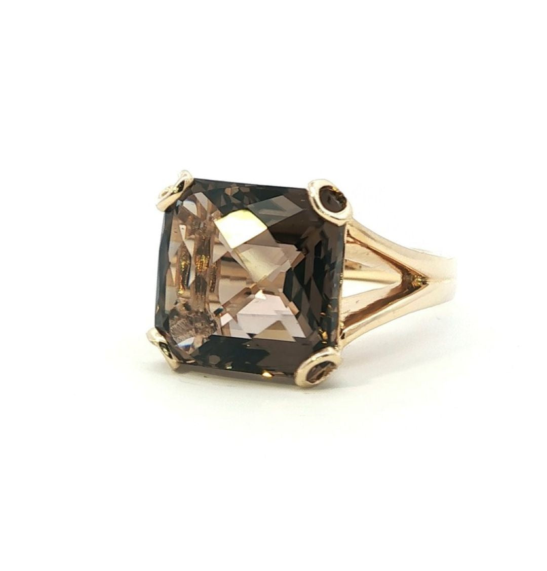 9ct Yellow Gold Dress Ring set with 13mm Octagonal Cut Smokey Quartz 9.5cts