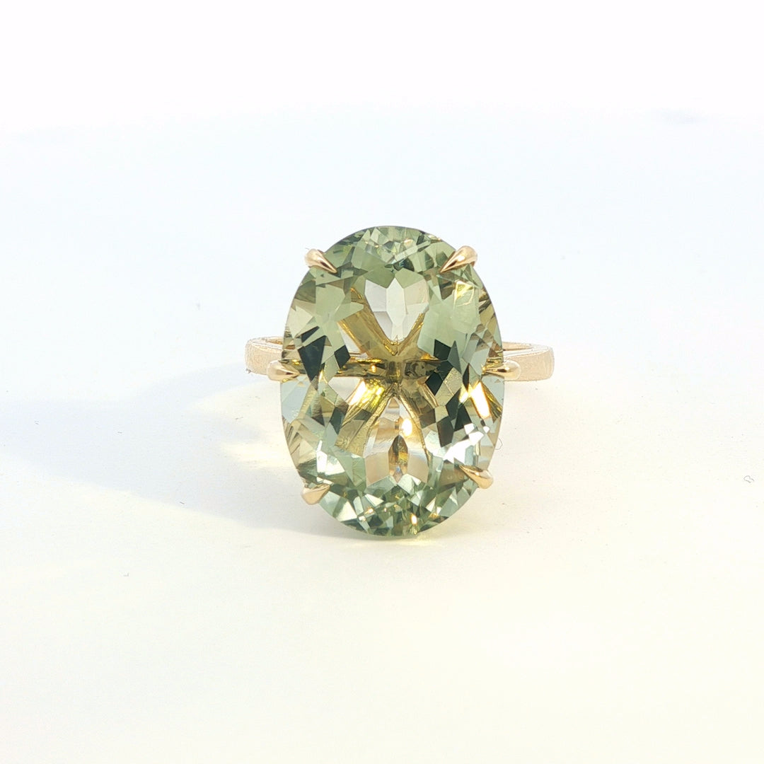 Oval Green Amethyst Cocktail Ring in 9ct Yellow Gold