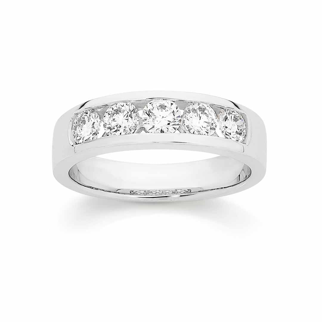 18ct White Gold Diamond 5 x Round Brilliant Cut Wedding Ring TDW=1.00ct JK/SI-I1
