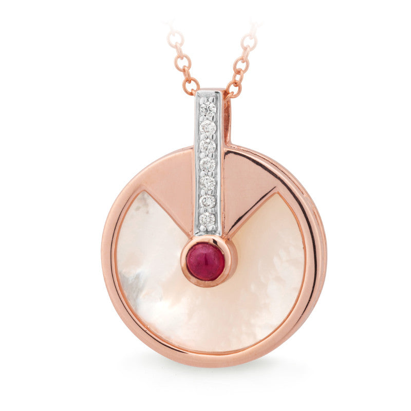 Rose Gold, Mother of Pearl, Ruby & Diamond Pendant