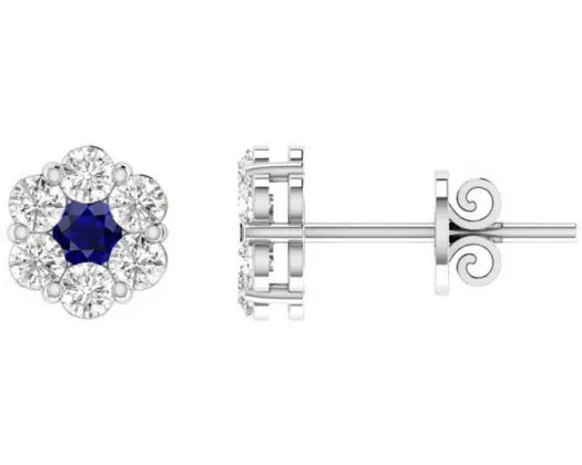 9ct White Gold Sapphire and Diamond Cluster Studs