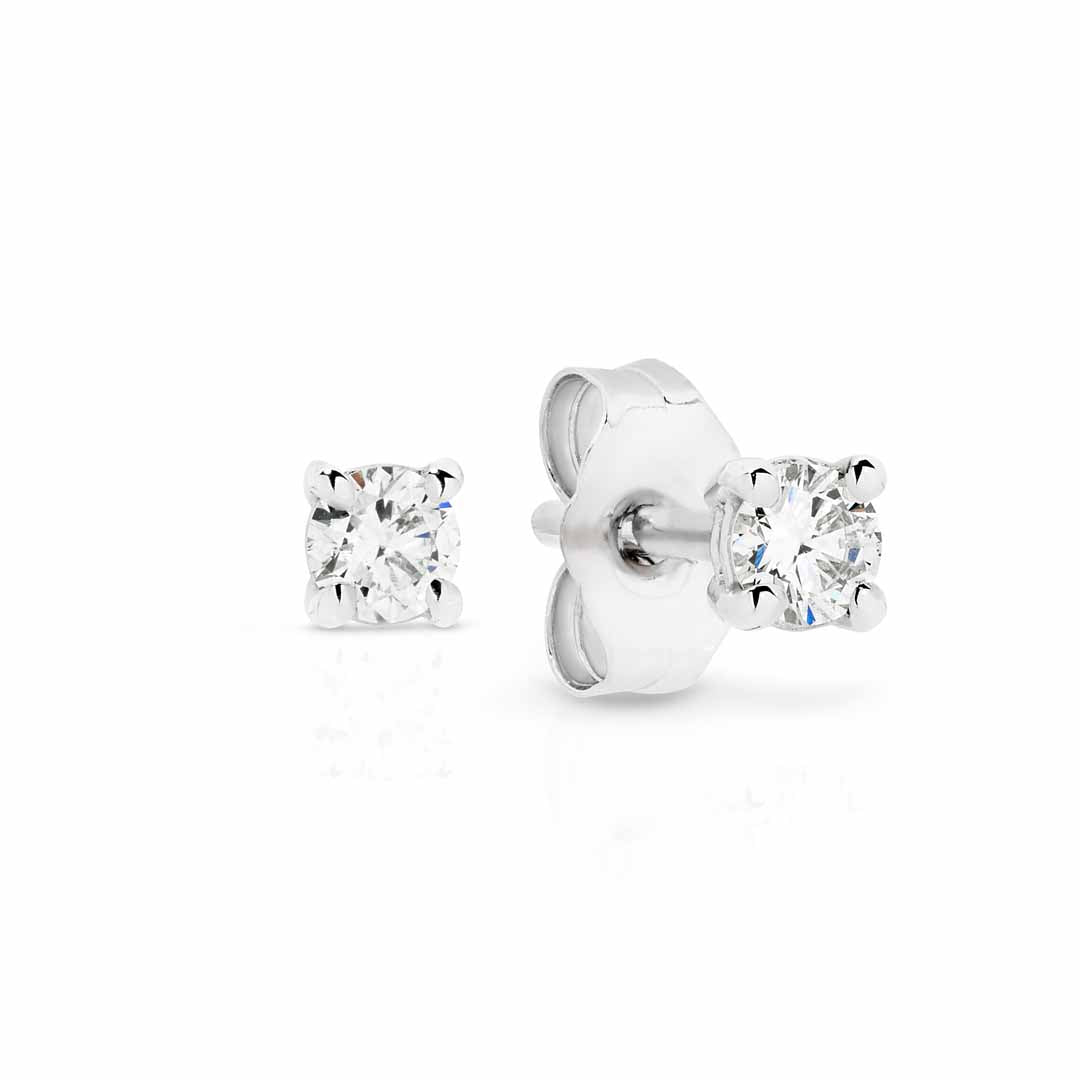 9ct White Gold 4 Claw Diamond Set Studs Total Diamond Weight=0.20ct, Colour G/H Clarity I1