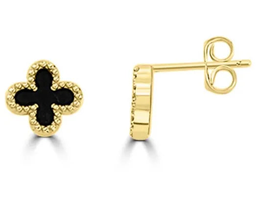 9ct Yellow Gold 4 Leaf Clover style studs set with Black Onyx